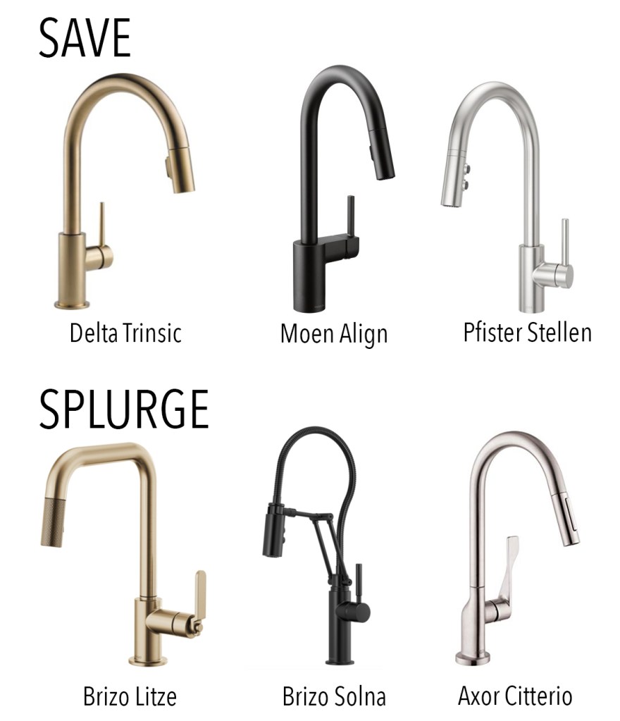 Though updating your countertops and changing to an undermount sink can be a big ticket item – simply changing out your faucet can make a big difference. Getting rid of that builder basic faucet and opting for a more functional pull down style can be a great way to update the space. A stainless steel faucet will work well with your stainless steel sink, but opting for a black or brass faucet to match your hardware can help to elevate the space as well.