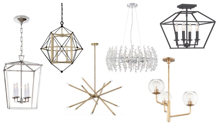 Though adding pendants, pot lights or under cabinet lighting might be out of the budget, simply switching your existing ceiling fixtures can make a huge impact. Say goodbye to the boring flush-mount light and opt for something more decorative.