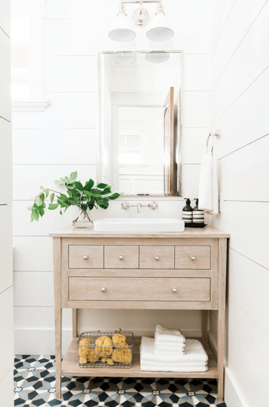 Now that the cold weather has hit, I’ve found that I’ve been staying home more. This sounds like a good thing – but it always makes me think about what projects I’d like to take on or what areas of my home that I’d like to make some changes to. One area of my house that I’ve always been bored with is the powder room. Now I’m not sure if a change is on the horizon at this point, but I’ve been taking a look at some different style options for the space. It’s hard to scroll through Pinterest and not see modern farmhouse powder rooms like these ones below:
