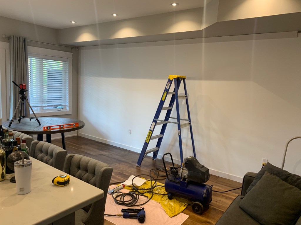 After the wall was painted, we installed the two vertical end pieces first using the laser level to ensure they were installed square. Then we continued to install the top and bottom pieces to create a frame around the wall.