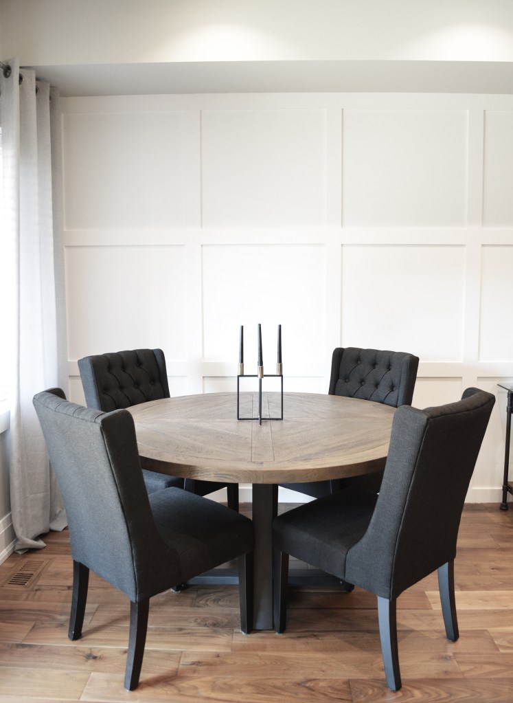 During the second week of lockdown, Matt and I ordered all of the materials we’d need to create the board & batten grid wall from Home Depot. We figured since we were both home in quarantine, it would be a great time to finally tackle the project. If I had known the shipping would have taken 8 weeks, I probably would have opted for curb side pick up… Hindsight is 2020 – but we were amid a pandemic, so I’m not going to complain about that too much. Even though we did it three weeks after I went back to work and spent the better part of a weekend doing it, I’m happy that we put some time into the space because it is incredible how different the whole space feels now.