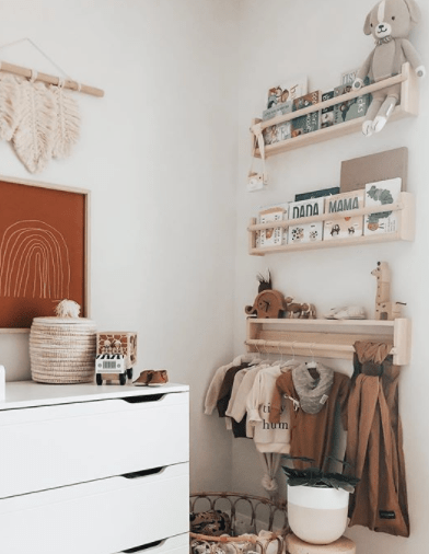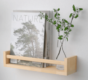 Don’t be fooled by this being described as a spice rack. My favourite uses for this $7 gem have mainly been outside of the kitchen. Basically every nursery has some of these on the wall holding up baby books. This spice rack looks great in small spaces like laundry rooms, bathrooms and offices where you need some extra storage. You can store plants on it. It can be painted, stained or left natural. Whether you use it as a shelf with a rail or install it upside down and use it for hanging storage – it is just absolutely so versatile.