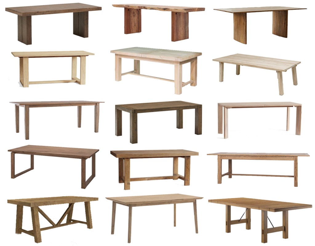 FROM TOP LEFT: Structube Cologne Dining Table $549 | Mobilia Niran Live Edge Dining Table $1699 | West Elm Anton Dining Table $1649 | Pottery Barn Linwood Dining Table $1910 | Wayfair Sarreid LTD Bauhaus Solid Oak Dining Table $2699 | Article Teaka Dining Table $1939 | Crate & Barrel Basque Grey Wash Dining Table $1199 | Structube Hamburg Dining Table $449 | Pottery Barn Dakota Dining Table $1175 | IKEA MÖRBYLÅNGA Dining Table $699 | Pottery Barn Reed Dining Table $1175 | Urban Barn August Dining Table $1999 | Home Depot Andora Dining Table $1607 | Structube Kabbann Dining Table $399 | Wayfair Beachem Dining Table $1149