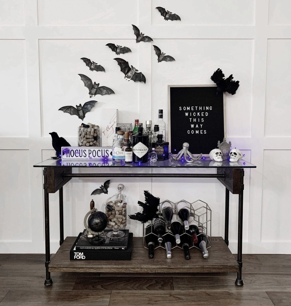 For the bar, I added some of the Martha Stewart wall bats as well as some skulls and crows/ravens from Michaels.