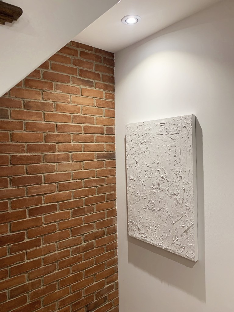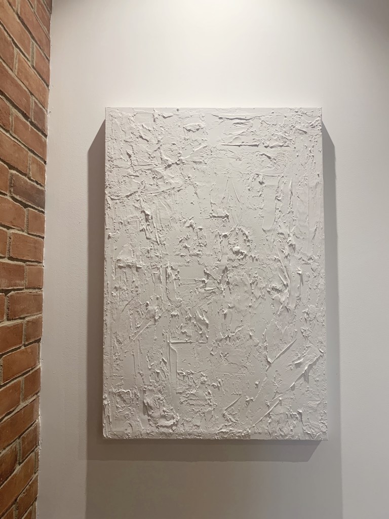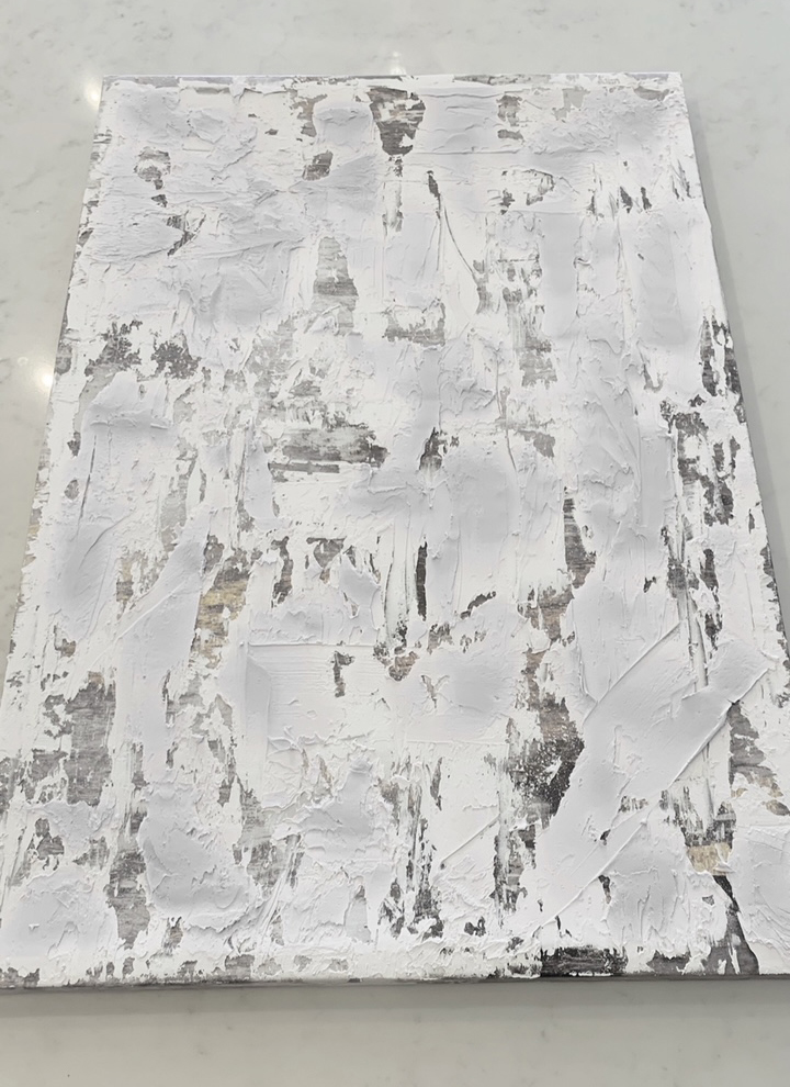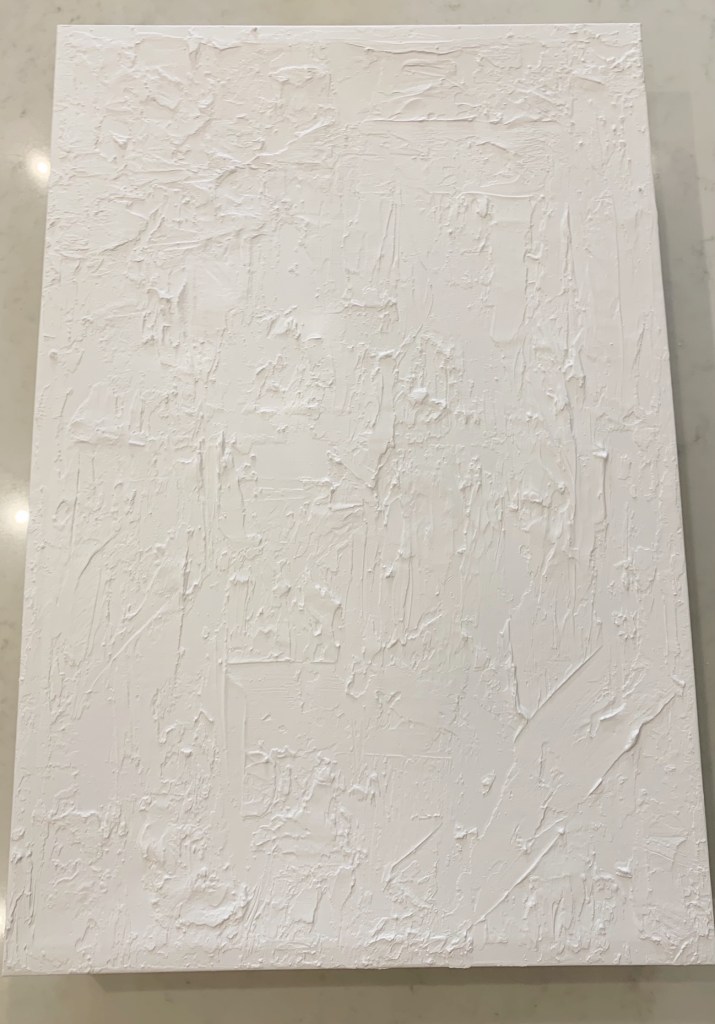 After seeing a few posts about DIY Textured Drywall art – I thought I’d try to make my own. Why? Because I had everything I needed, I am the worst at trying to make decisions on art pieces to buy and having the texture meant I could have it just be plain white.