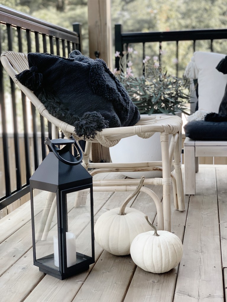 Since the first half of October was pretty warm – I even got some pumpkins for the back deck to pair with my black lanterns and patio furniture for spooky morning coffees.
