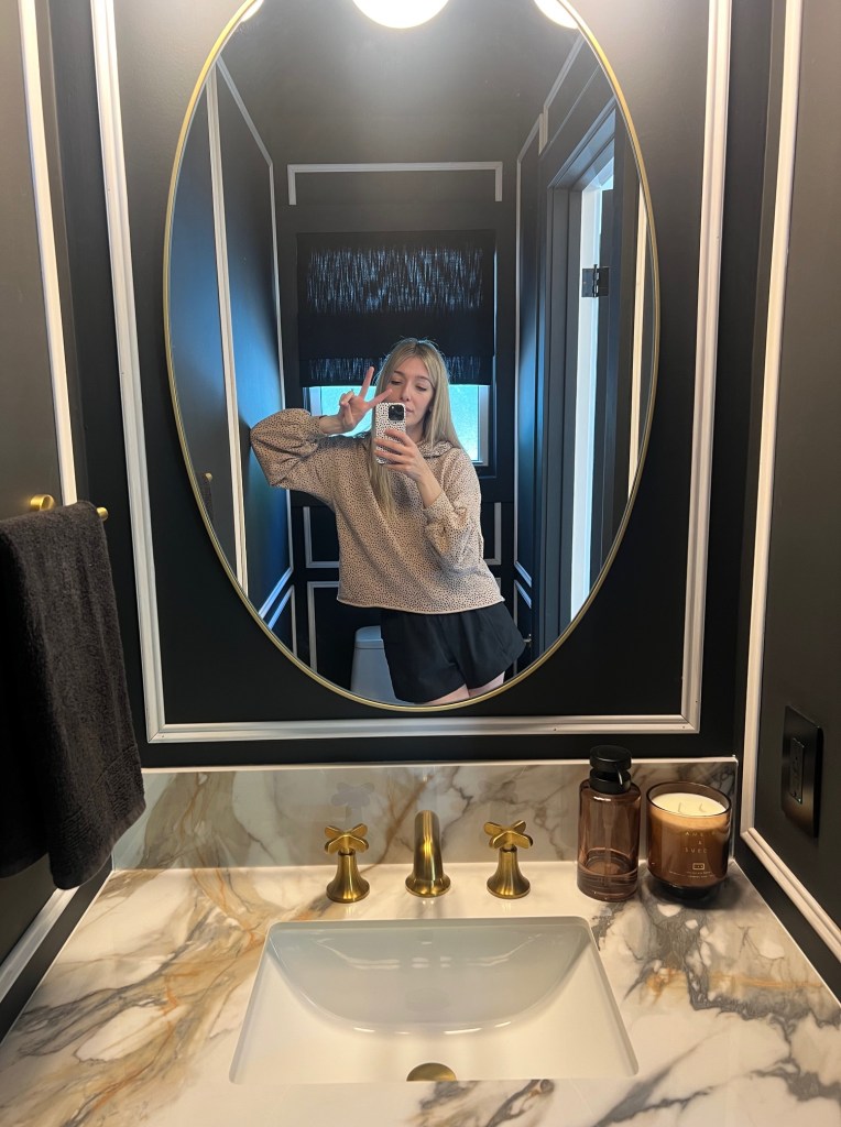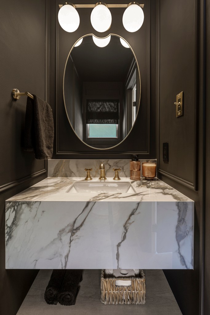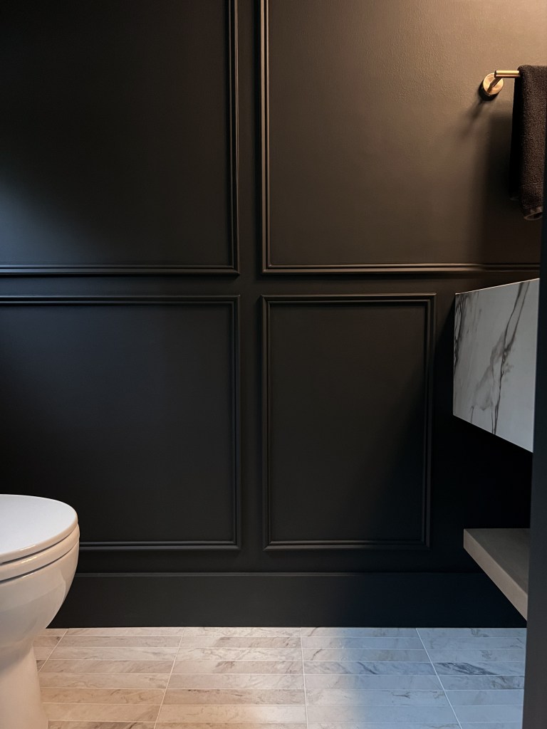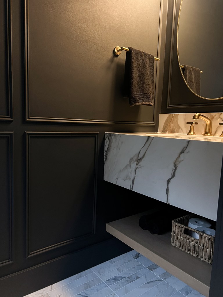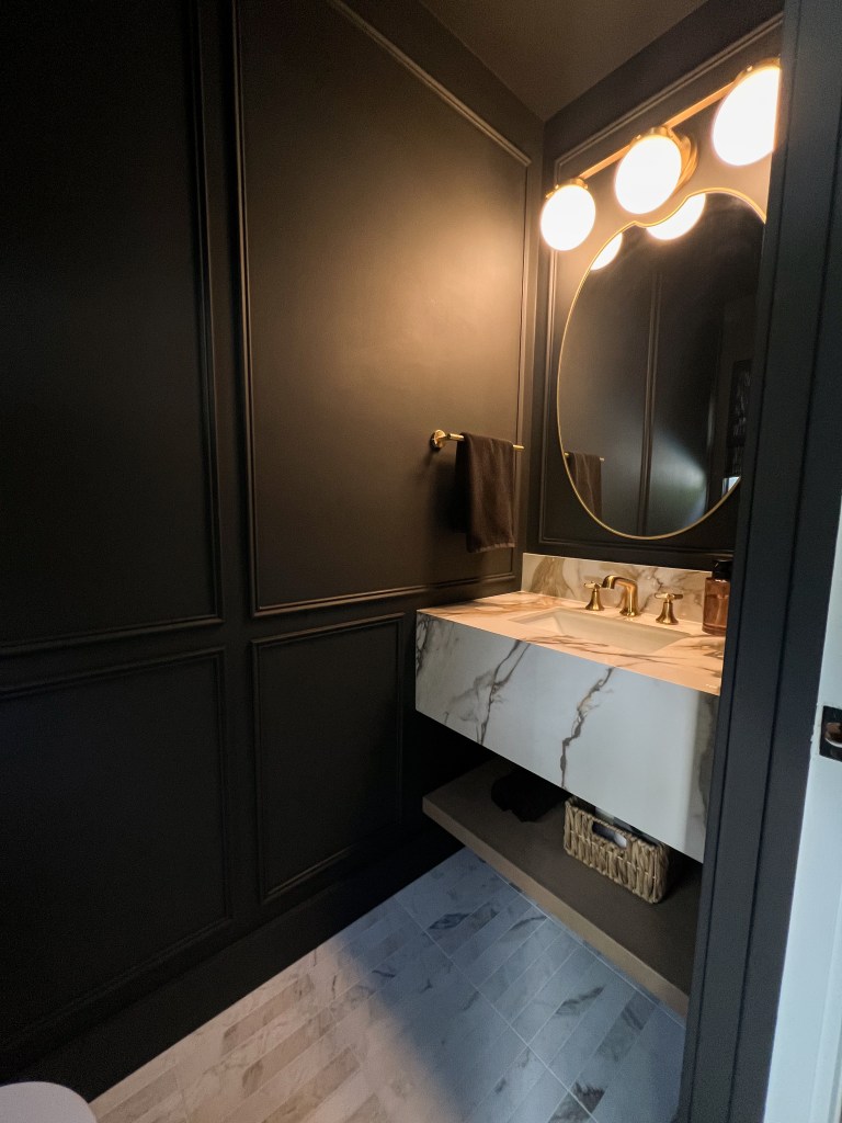 Now that our powder room is officially complete – I thought I’d share a glimpse into some of the final details. If you read my previous post for our powder room plan – you may remember that I was debating between dark & moody or bright & airy – though I’m sure the featured image in this post will give away which way we went with it!