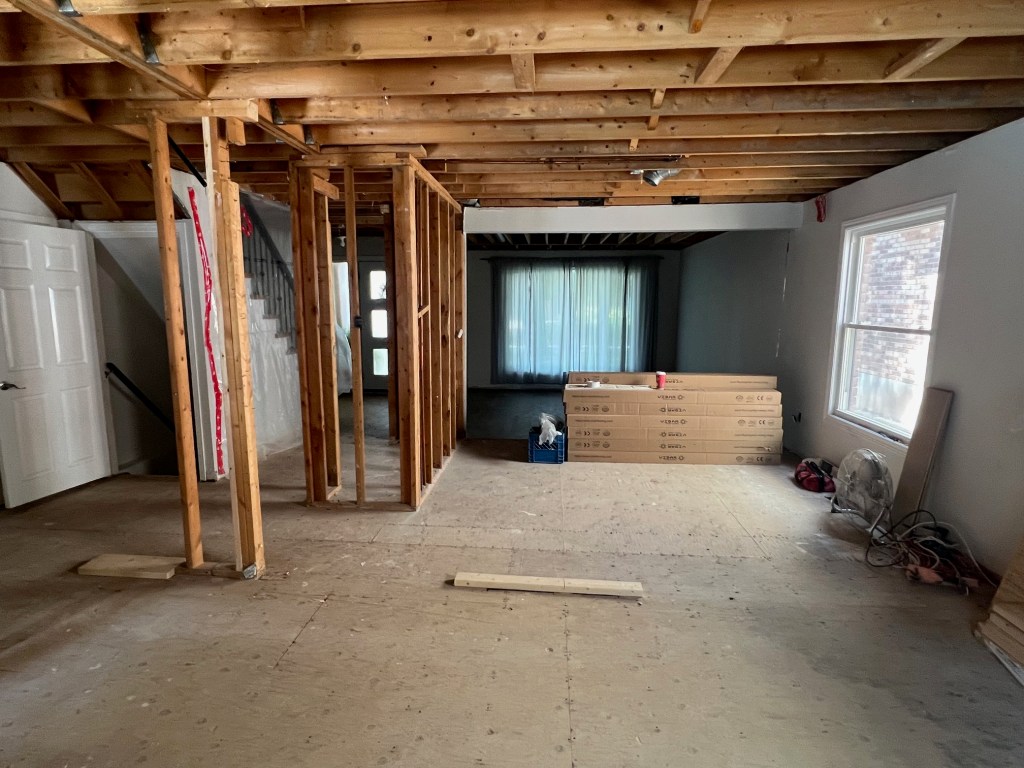 There were a few things that needed to be corrected structurally. Raising the back bay window allowed us to accommodate the new layout. This is the worst part of the renovation to live through in case you’re wondering…